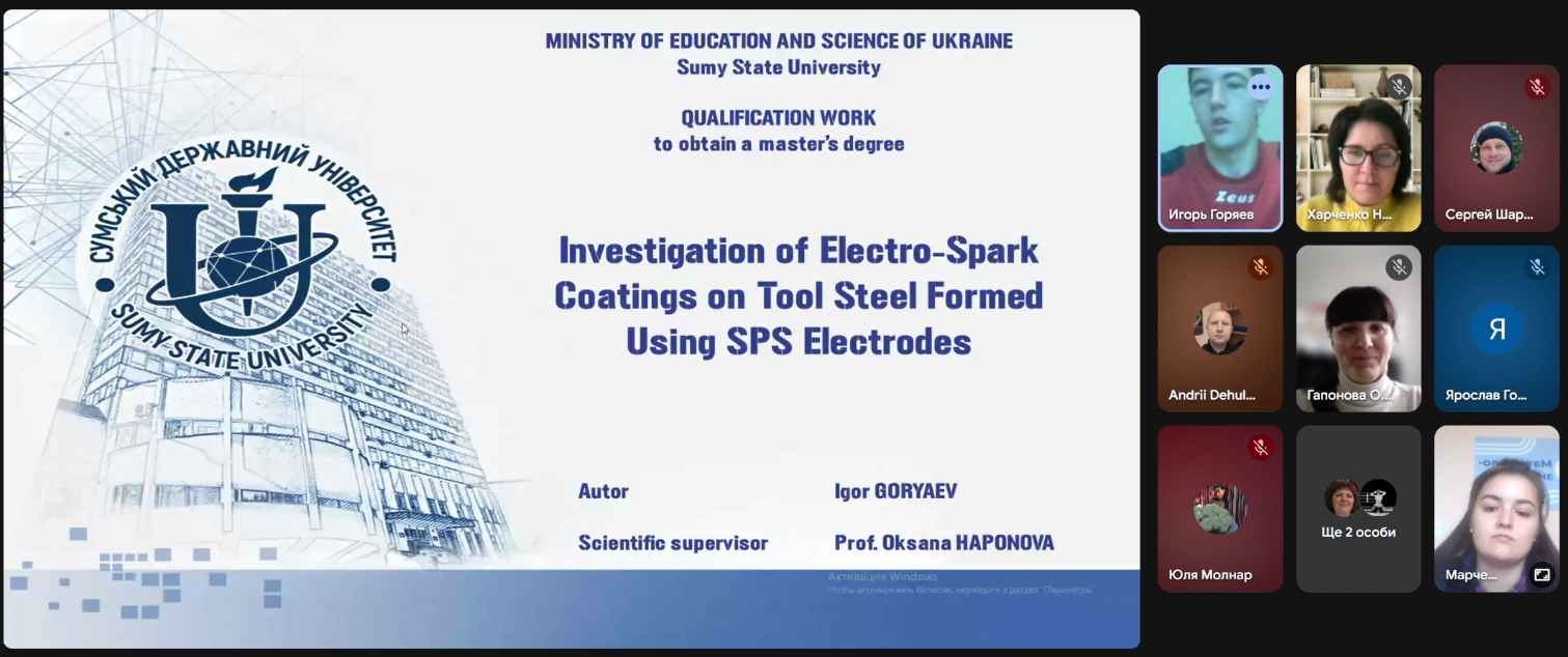 16 грудня 2025 року відбувся захист кваліфікаційних робіт для здобуття ступеня "магістр" спеціальності 132 Матеріалознавство (освітньої програми «Прикладне матеріалознавство»)