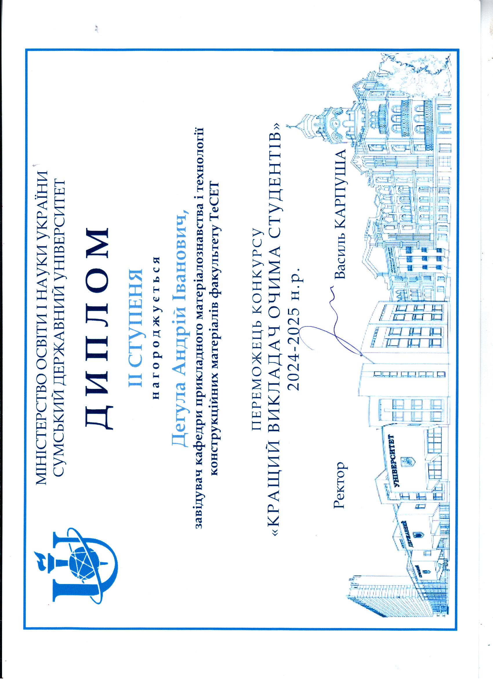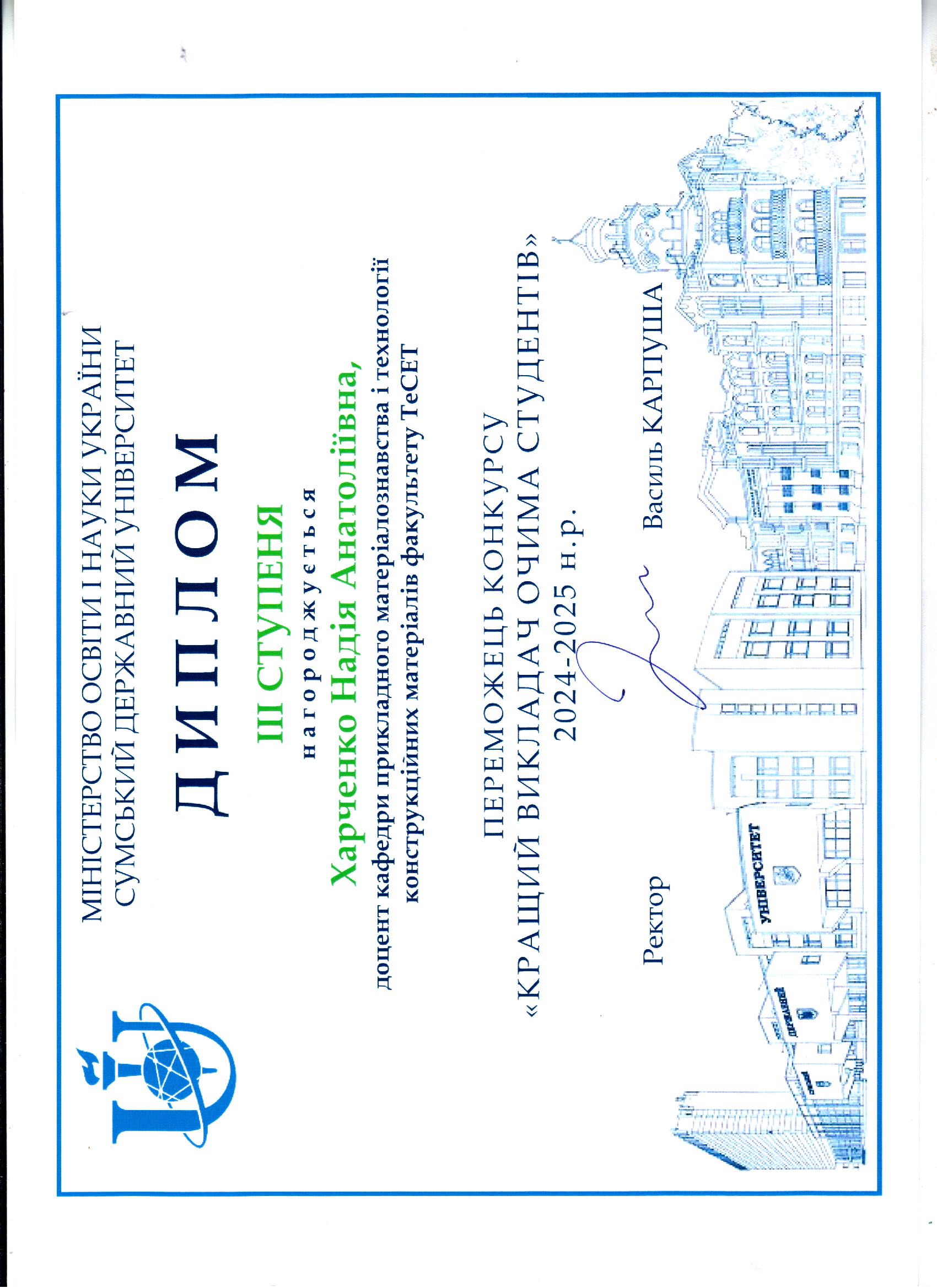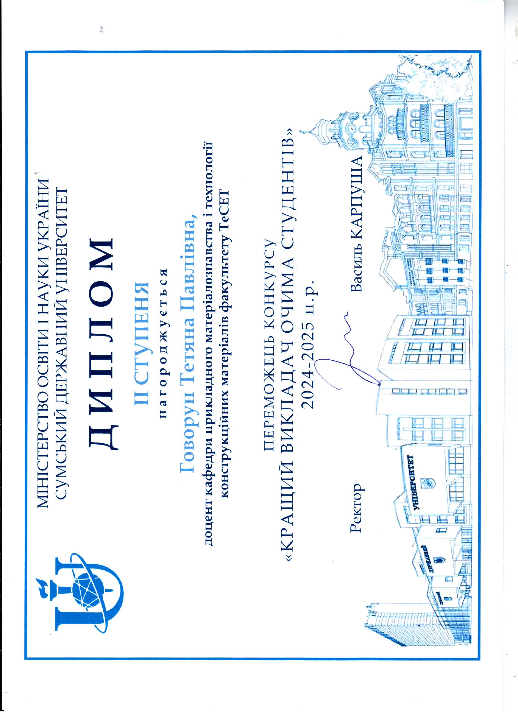 Викладачі кафедри прикладного матеріалознавства і технології конструкційних матеріалів отримали дипломи за результатами університетського конкурсу «Кращий викладач очима студентів».