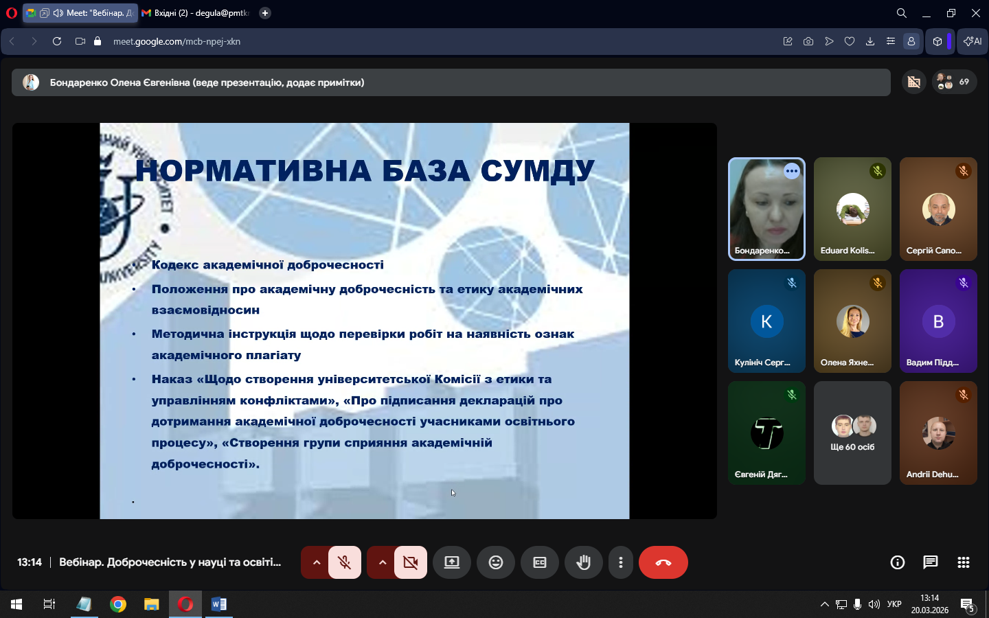 20 березня 2026 року на факультеті ТеСЕТ Сумського державного університету відбувся вебінар, присвячений проблематиці академічної доброчесності у сфері вищої освіти.