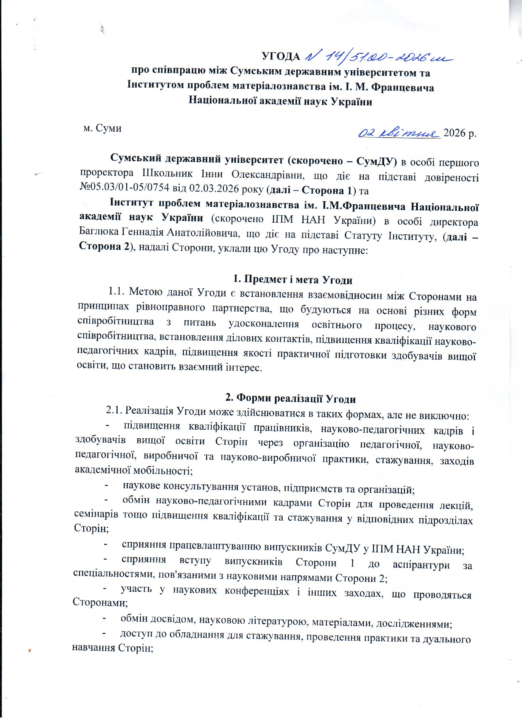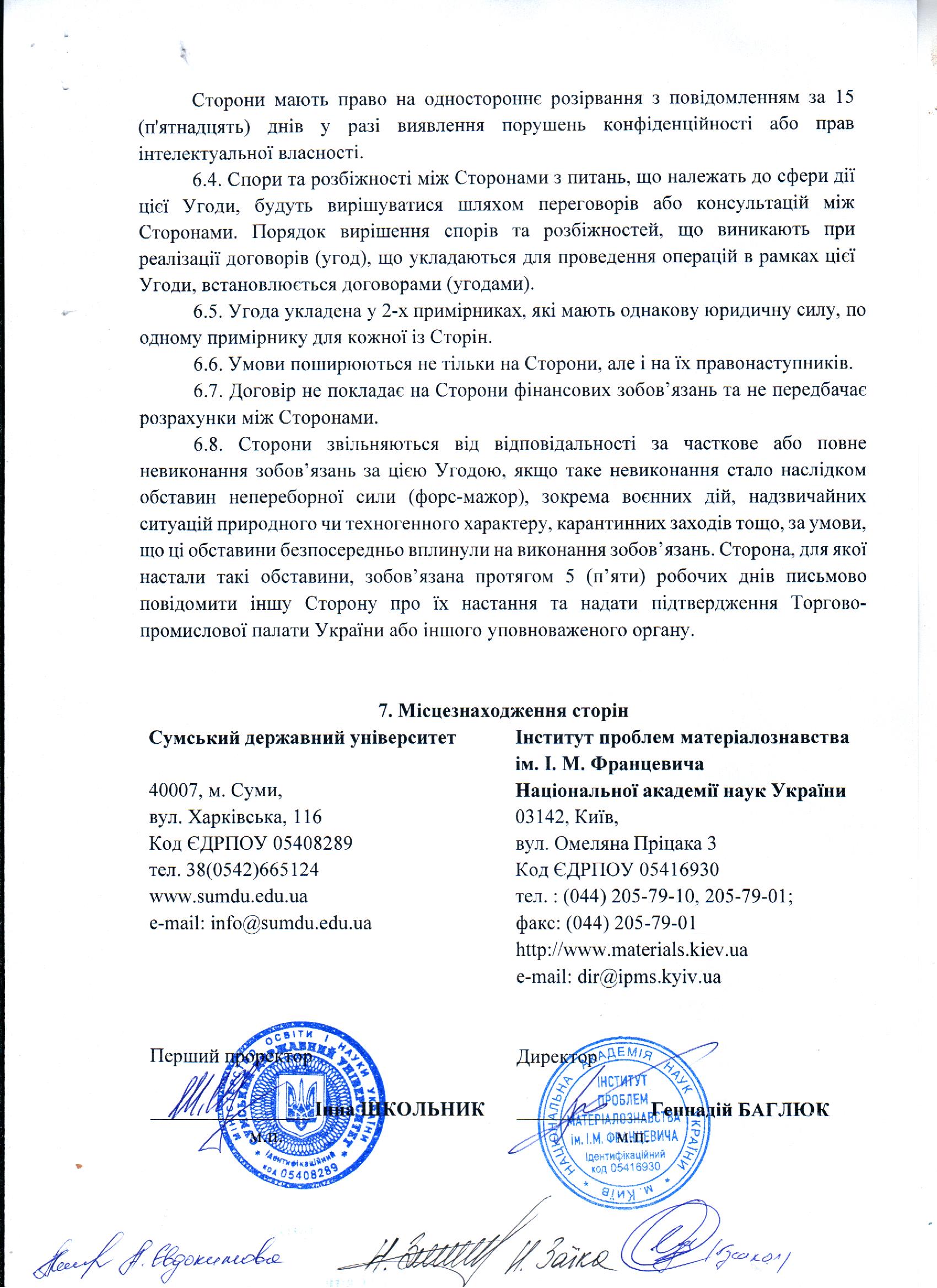 Сумський державний університет уклав угоду про співпрацю з Інститутом проблем матеріалознавства ім. І.М. Францевича Національної академії наук України